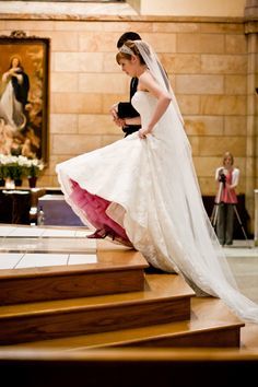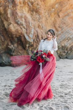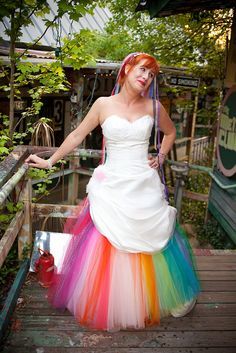 We're loving the splashes of colour coming from these bridal tutus. The dark pink tutu skirt peeking out from underneath her dress is beautiful, and the rainbow tutu skirt is super adorable. We think that the dark pink long tulle bridal tutu skirt is perfect for a Bohemian themed wedding. We found all of these ideas once again on Pinterest.